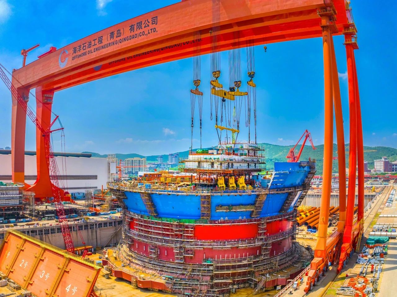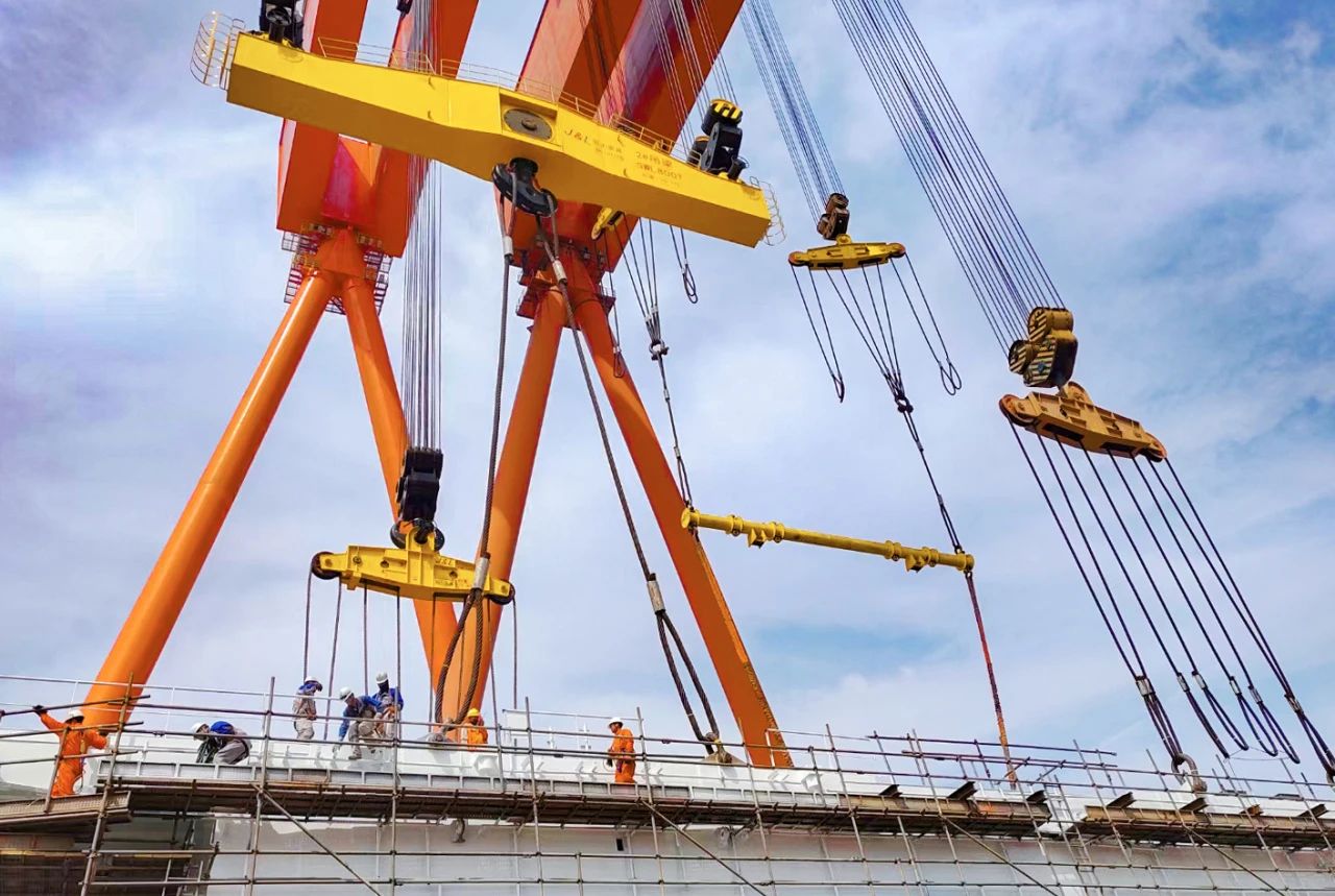 2023年12月,由我国自立设想制作的亚洲首艘圆筒型“海上油气加工场”“陆地煤油122”浮式出产储卸油装配——“海葵一号”超等动力碗在青岛实现主体制作,巨力索具供给800吨吊梁、400吨、500吨吊排及配套索具构成成套吊装体系,全程共同吊装顺遂停止。