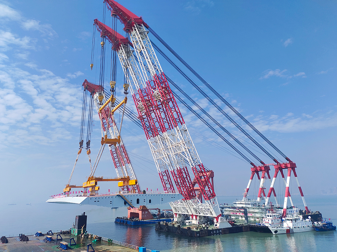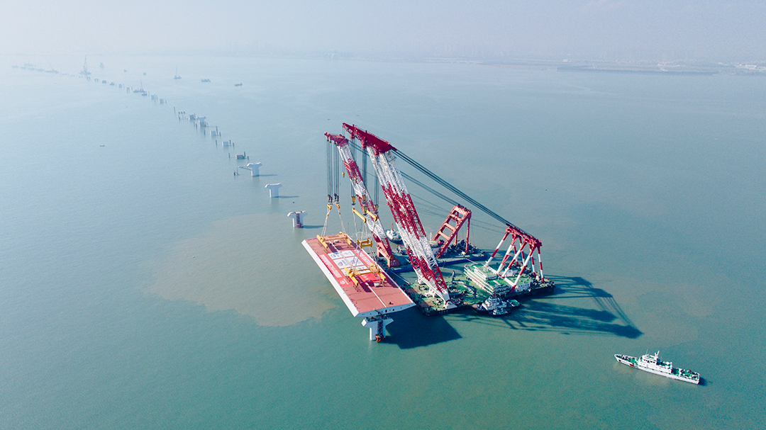 厦金大桥(厦门段)总长约19.6千米,本次吊装的钢箱梁位于大嶝西航道桥东侧的90-91号墩,梁长142.5米、宽44米、高4.5米,总分量4586吨,可谓“海上巨无霸”。该梁段的胜利架设,革新了海上拆卸式桥梁整孔架设钢梁的分量记实,也为行业内浅滩海疆“智能拆卸化”造桥供给了主要理论。