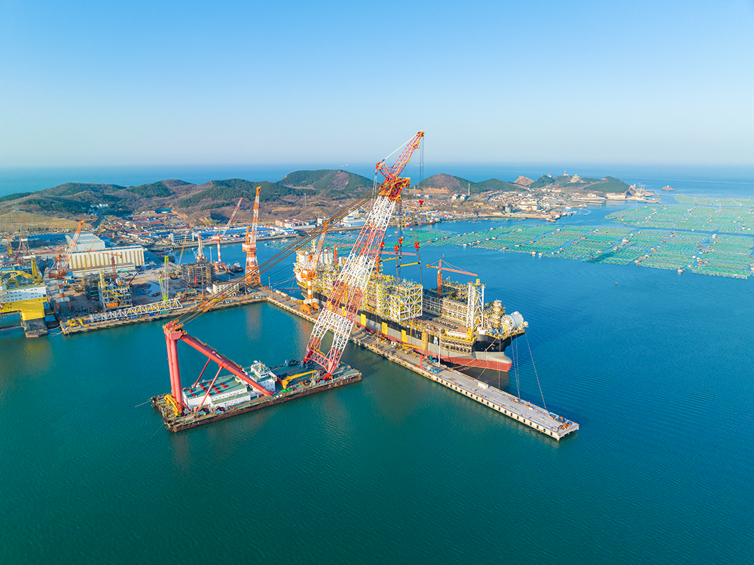 巨力索具5000T吊梁标准体系助推发达国家自理生产制作的比较大总吨位、比较大储宇量的新式的水上浮式液化石油气自燃气产地装配图NGUYA FLNG顶部功能公司胜者,为之后的世界任务开工奠基仪式了更加坚固根本性。