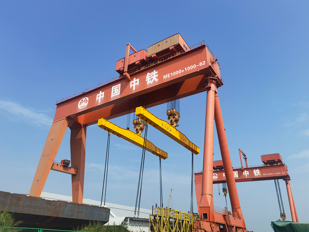 中铁跨河特大桥局修建的常泰长江跨河特大桥,主航运桥首份1280吨的钢梁卸载作业完工,巨力索具1900吨小节段钢梁吊具一直保护该项目卸载作业顺遂停此。