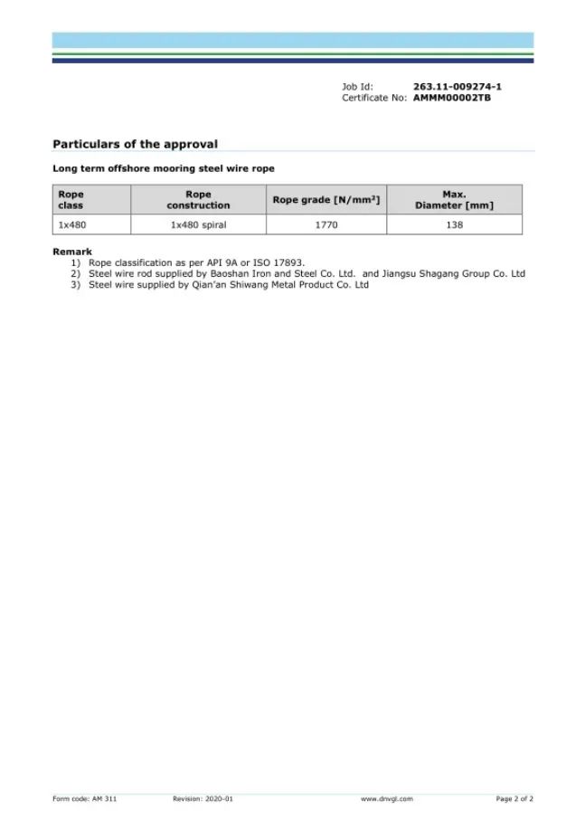 此项产物认证胜利,标记着我公司深海工程用单股钢丝绳产物手艺完成了庞大逾越,弥补了国际空缺,加强了市场合作力,为国产系泊品牌进军深海系泊范畴奠基了坚固根本,具备久远的社会经济效益。
