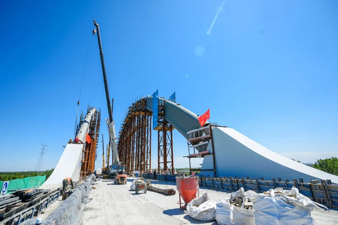 △ 京雄城际铁路跨大广高速系杆拱桥布局施工