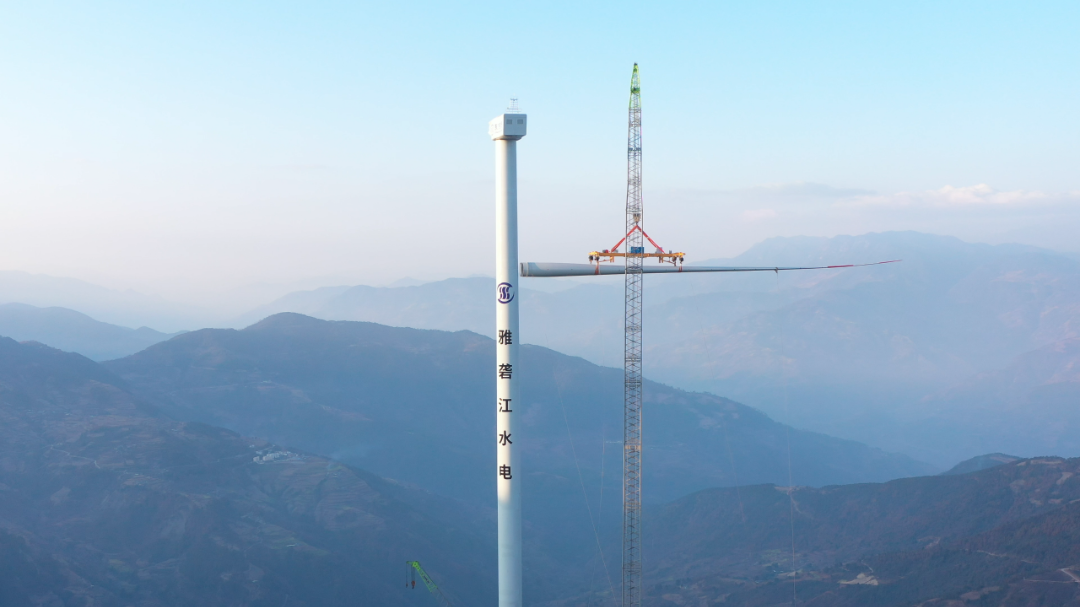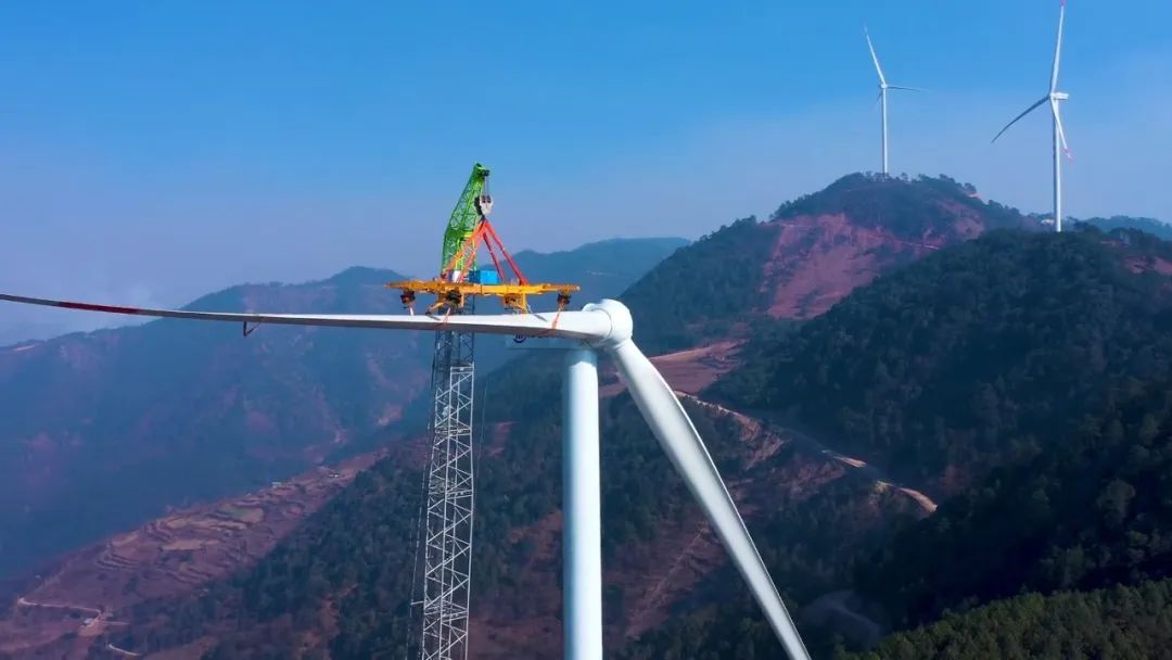 首战得胜!雅砻江水电腊巴山风电名目风机单叶片吊装